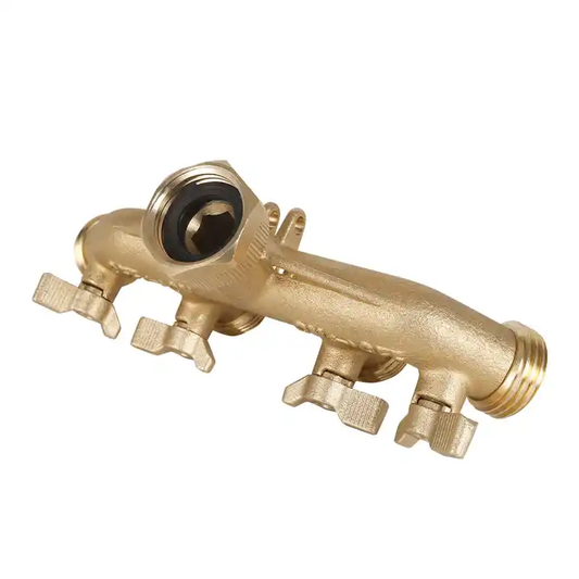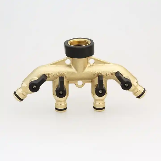 GeRain Brass Faucet Manifold 4 Way Water Hose Shut-off Valve